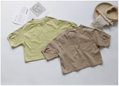 ナチュラルカラーで5分丈の袖にステッチがポイント☆