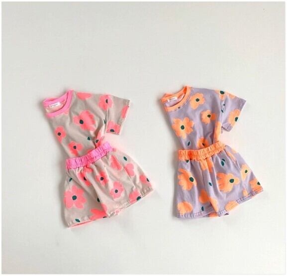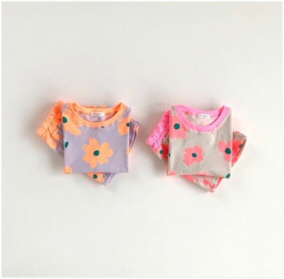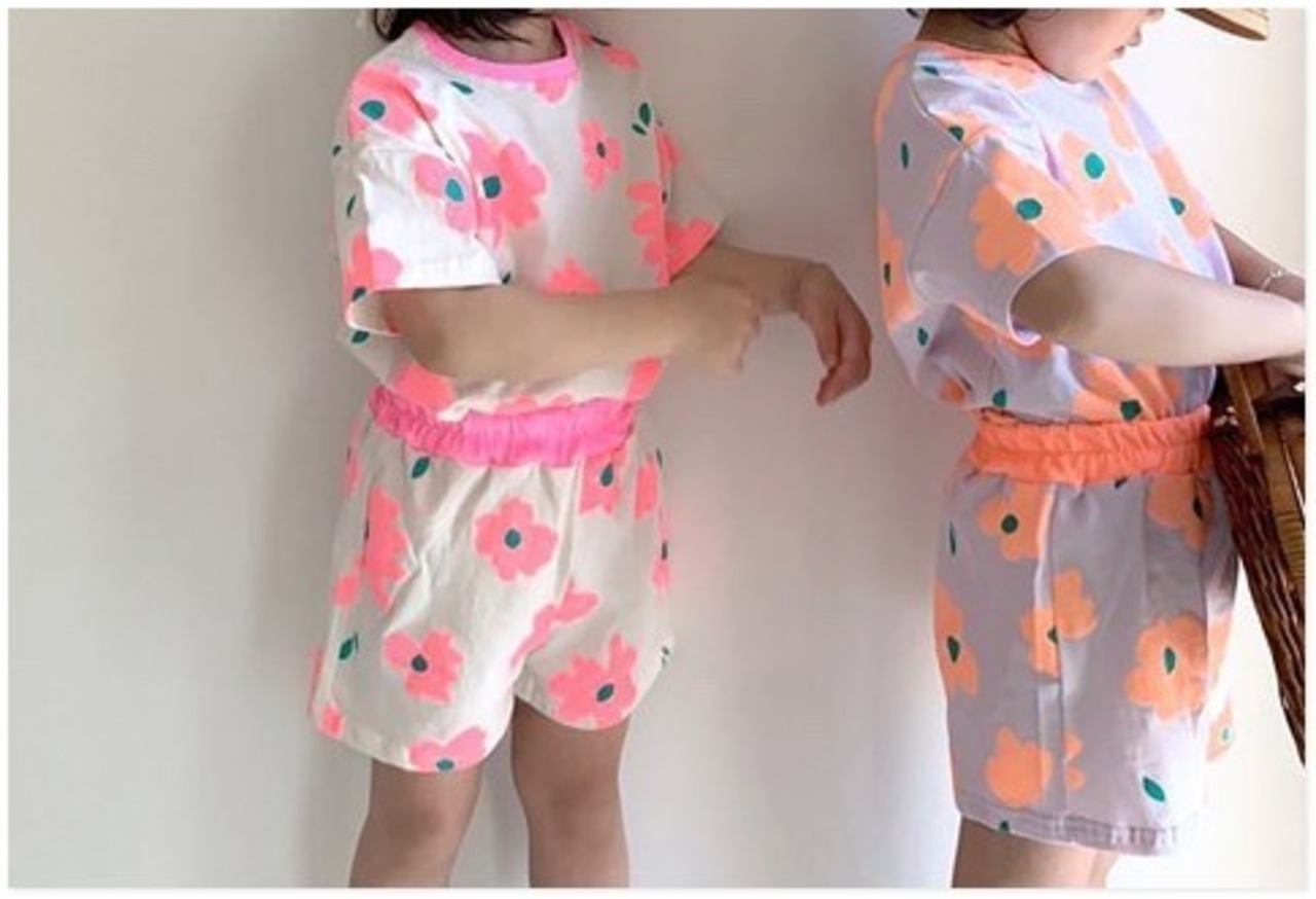 ☆即納☆.*。【韓国子供服】かわいい フラワー 半袖 セットアップ