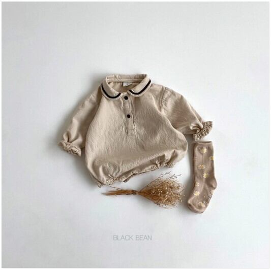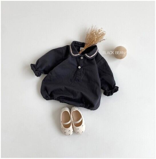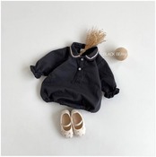 【ライン 丸襟 くすみカラー 長袖 ロンパース】